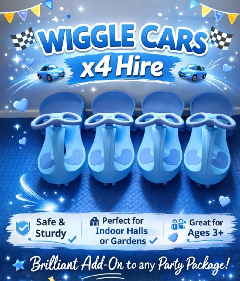 Our Blue Wiggle Cars are a fantastic addition to any event, providing hours of fun for children and even adults! These self-propelled ride-on cars are perfect for indoor hall hires, adding an interactive and exciting element to any party, wedding, school event, or community gathering.