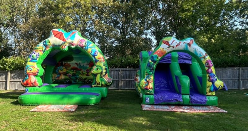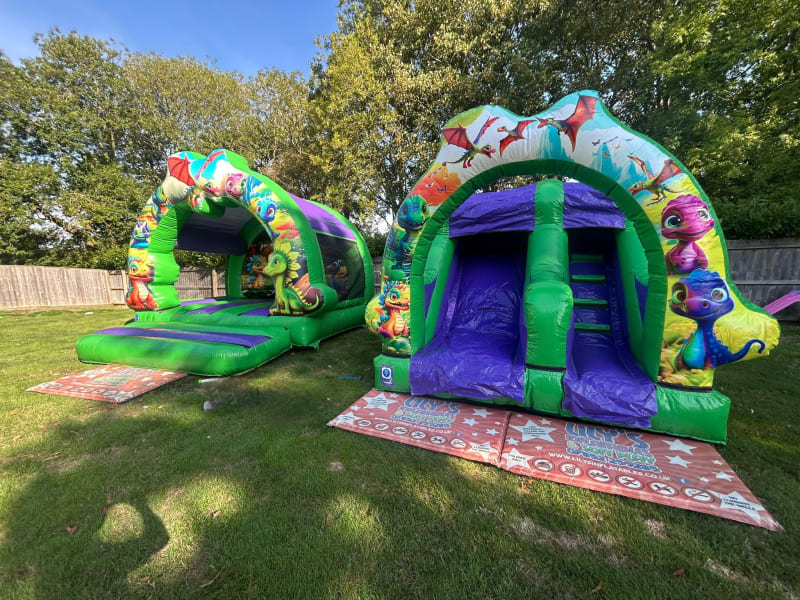 Here is our amazing Dino contour package which included our Dinosaur Contour Slide and matching Dinosaur Contour Bouncy Castle.