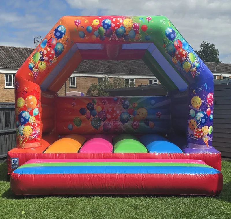 Here is our amazing Multicoloured party adult bouncy castle. Now available to hire at Lily's inflatables and softplay. This is great for birthday. Parties, barbecues, weddings, Christians are much more