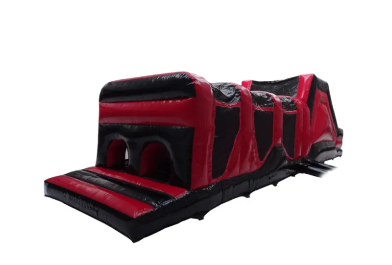 This is our Red and Black 55ft Assault course, This is Great for team building and great fun, it has biff and bash, a slide and jump in obstacles with small entrances.