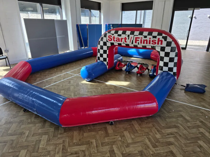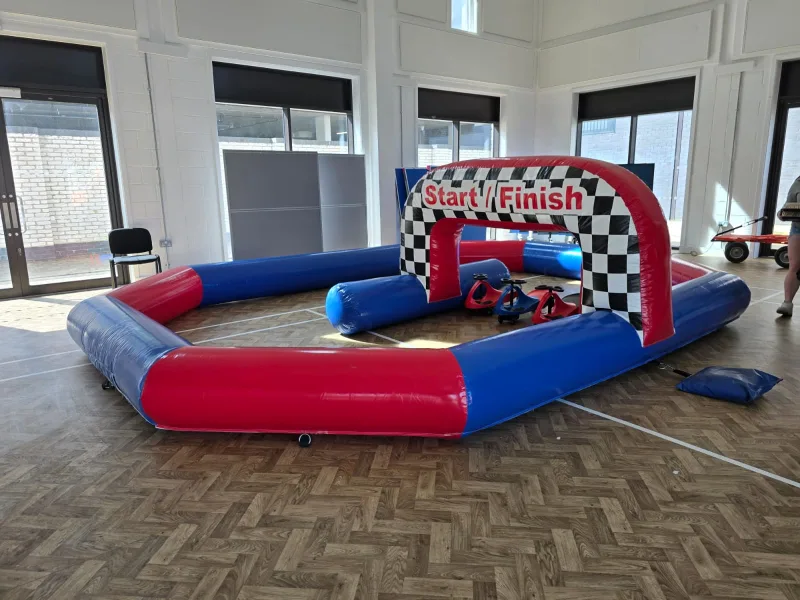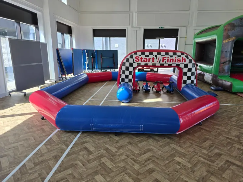 This amazing inflatable track makes races safe, with soft sides to bounce off if you go off course.