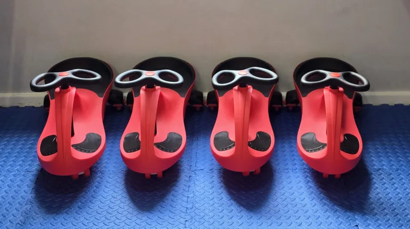 Here are our Red wiggle cars for hire they are great fun for hall hires and a great little extra to keep kids and adults entertained for hours.You will get 4 wiggle cars with this order