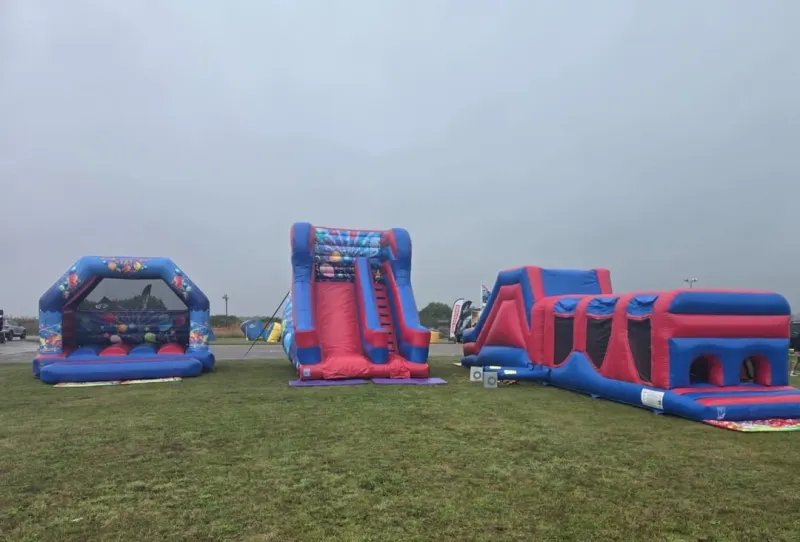 Here is the ultimate Party Package this is amazing for all ages, This package includes 10ft Red and Blue Slide, 15x15 Adult Bouncy Castle and Assault Course.