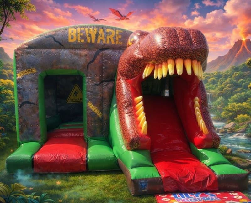 Here is Our Brand New T-REX 3D Dinosaur Bouncy Castle new for 2023, With its Beautiful artwork, amazing 3d Dinosaur head Bouncy Castle this is amazing for any Dinosaur Party.